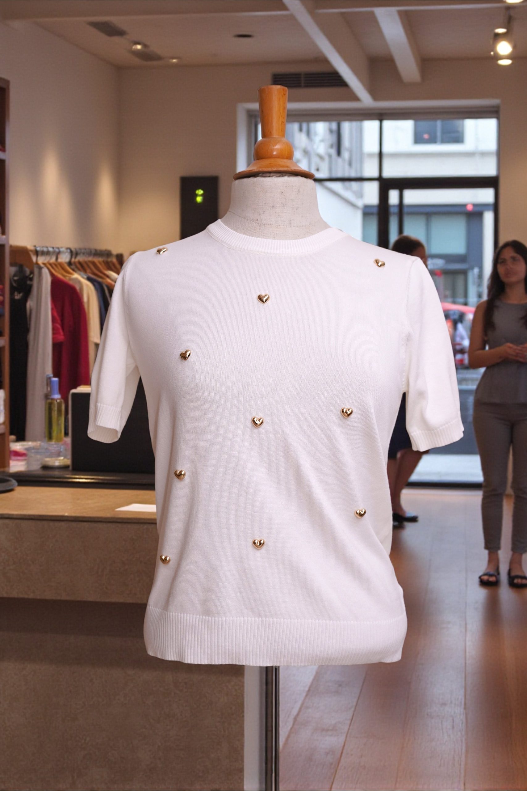 Harten trui wit met metalen gouden hartjes