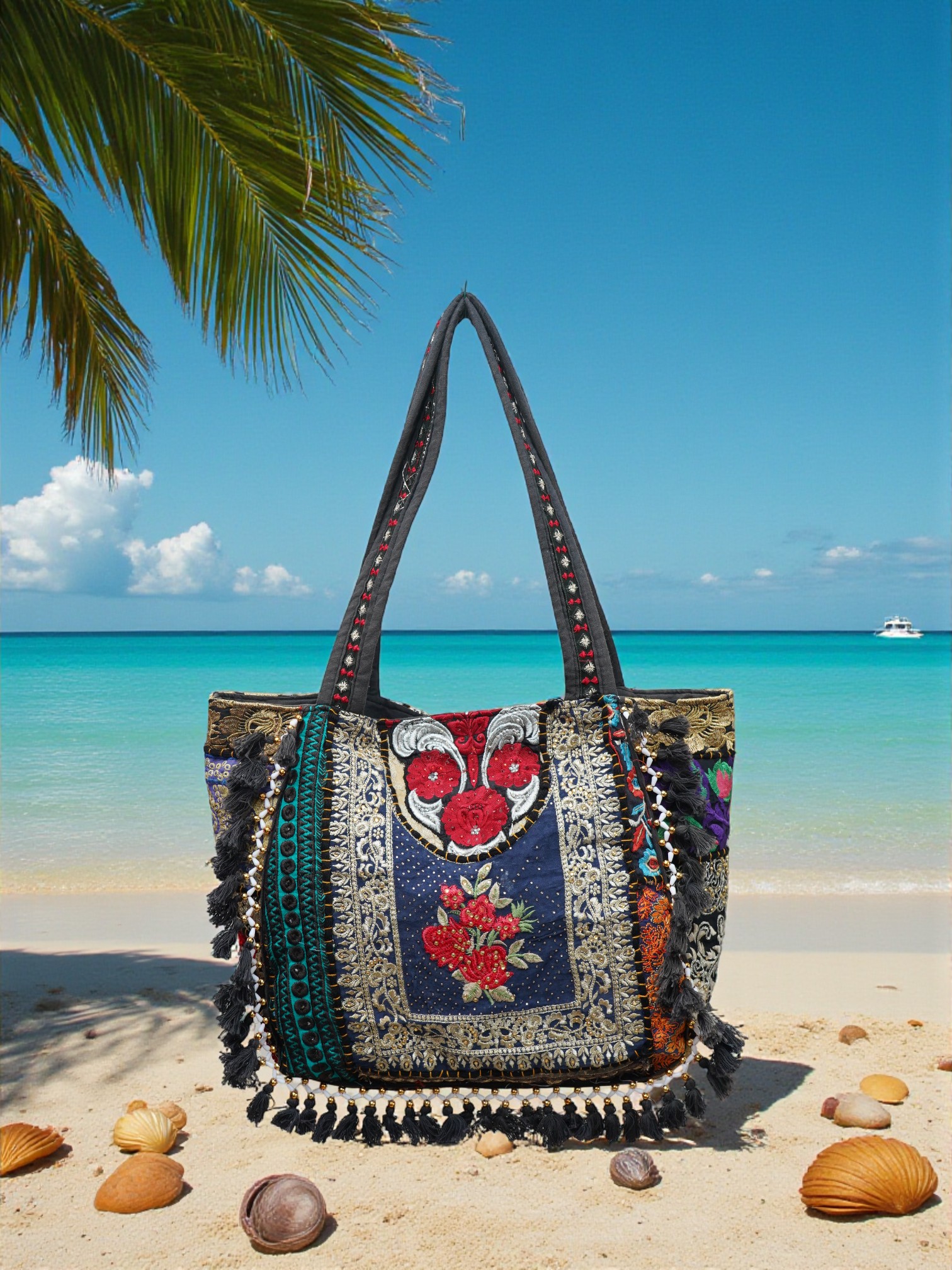 Deze kleurrijke schoudertas / Strandtas